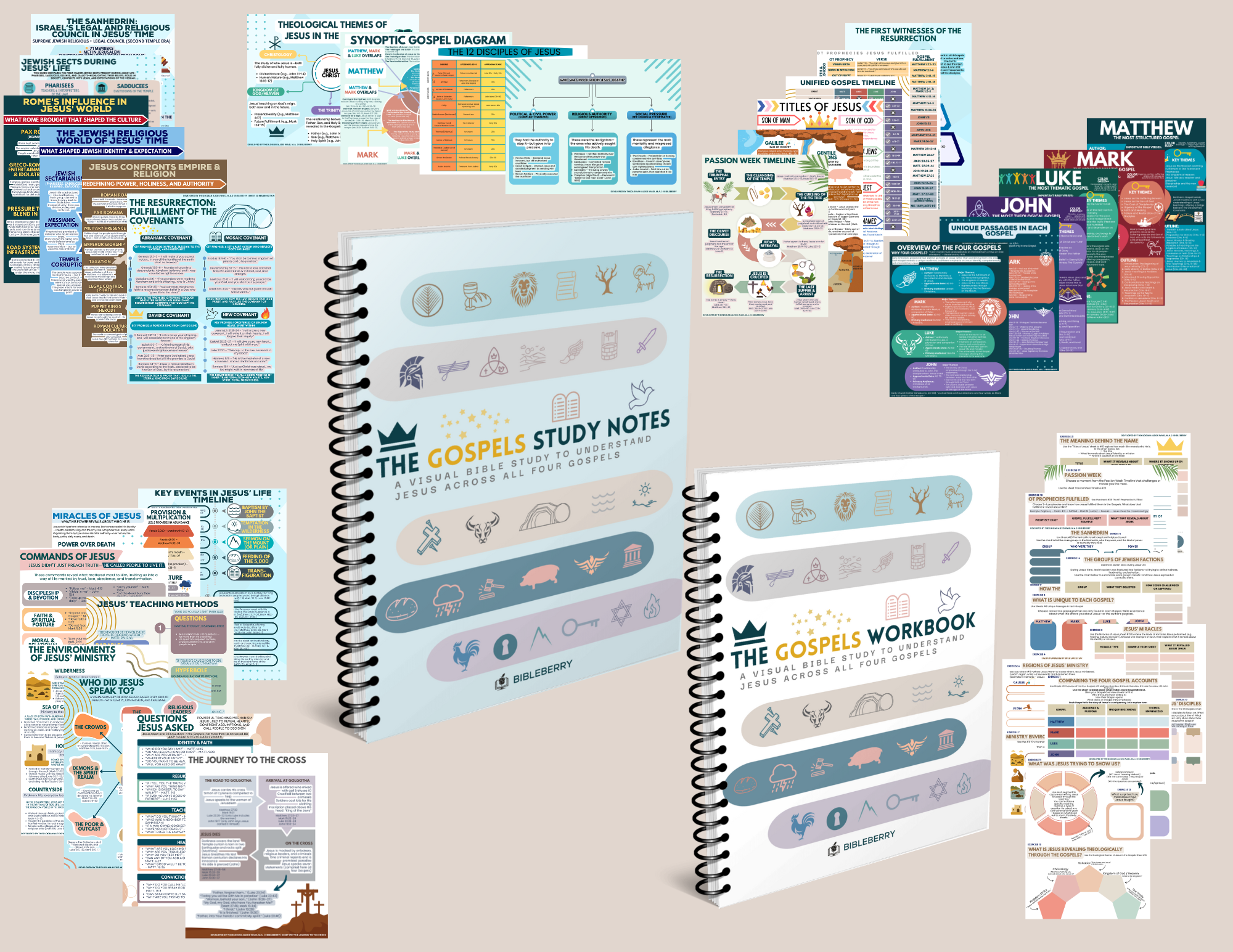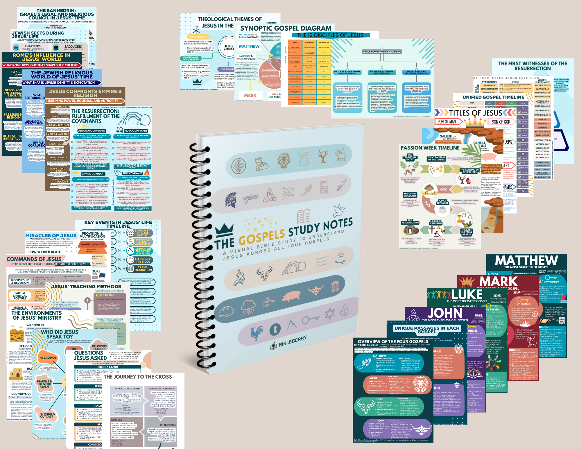 Each sheet is it's own study, using visual aids designed to help you remember the key factors for unlocking the depths of the Gospels. If you have ever felt overwhelmed by the complex dynamics of Gospels, or you feel like you keep studying but just can't retain information - this resource's visual foundation will help you stop feeling lost and to start being grounded in the story of Jesus.